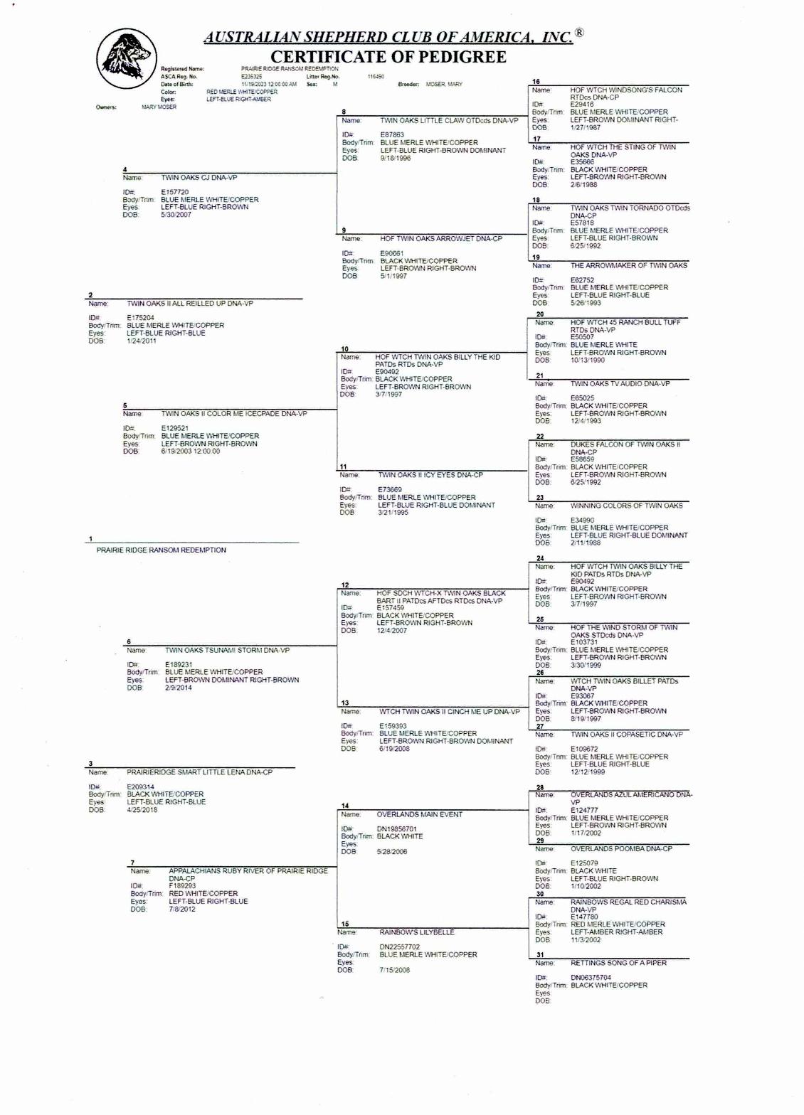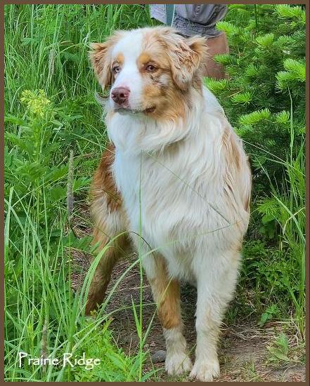 Prairie Ridge Ransom Redemption ASCA & AKC 2023 Red Merle Male 60 LBS Sire: Twin Oaks II All Reilled Up Dam: Prairie Ridge Smart Little Lena DNA: AKC & ASCA ~